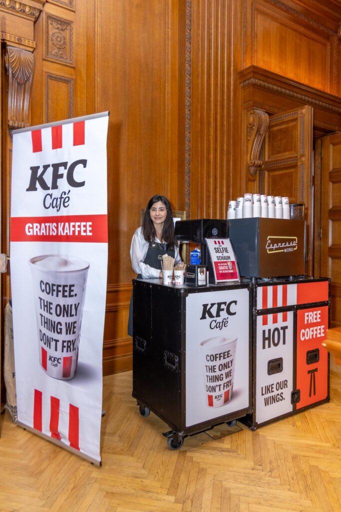 Ein ganz besonderes Highlight wartet im Foyer: KFC überrascht mit einem exklusiven Coffee-Mobil, an dem sich Gäste mit einem „Selfieccino“ – einem Cappuccino mit süßer Selfie-Latte-Art – einen stilvollen Koffein-Kick holen können. Ob für den perfekten Instagram-Moment oder einfach als Genuss für zwischendurch – hier wird Kaffee zum Kunstwerk!