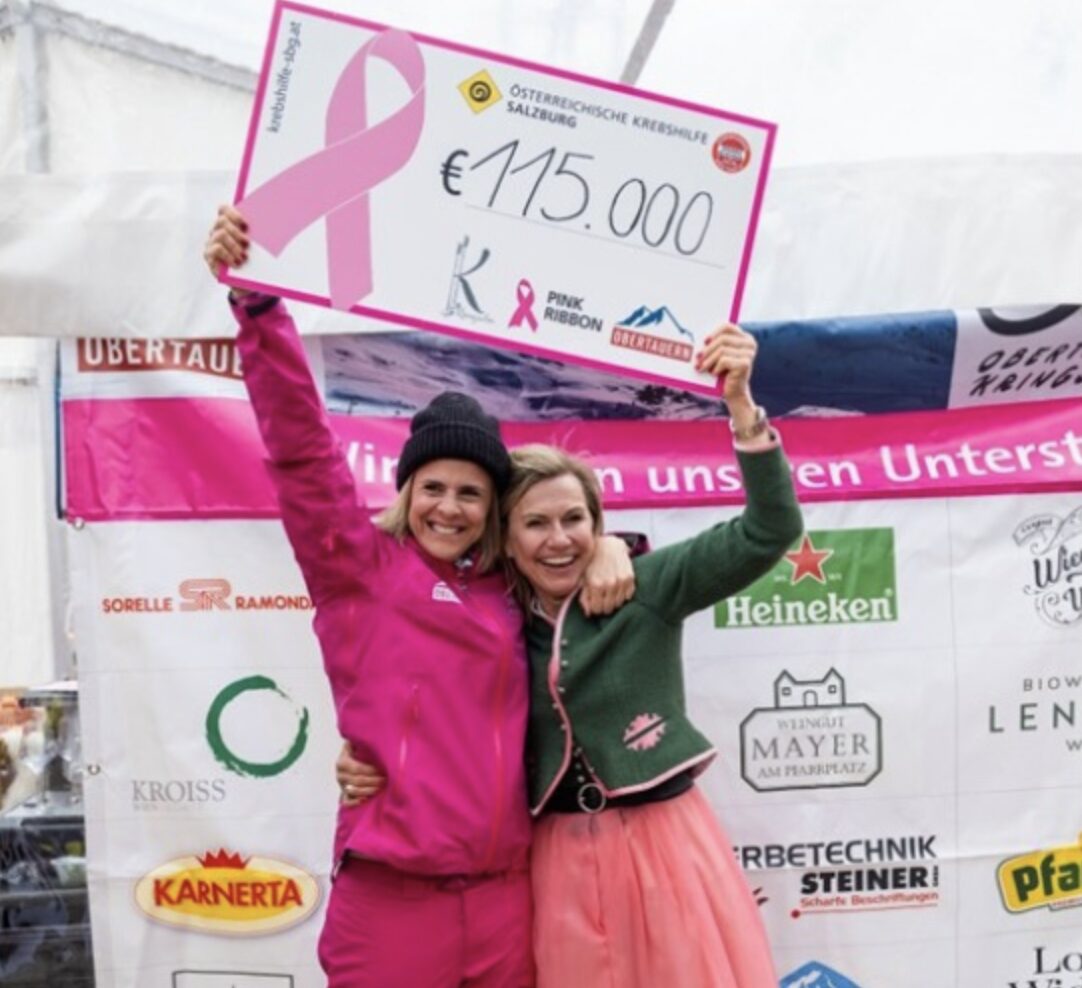 Rekordverdächtige Spendensumme: Am 5. April 2025 wurden in Obertauern 115.000 € für die Pink Ribbon Aktion der Österreichischen Krebshilfe Salzburg gesammelt.