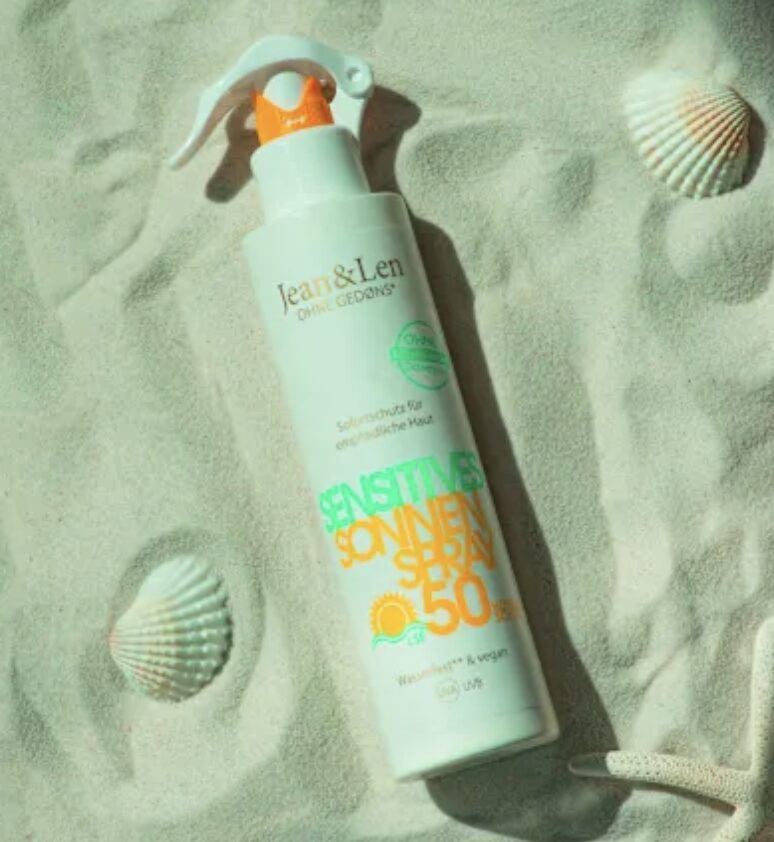 Für alle, die Wert auf Naturkosmetik legen: Dieses vegane Spray schützt zuverlässig und ist dabei besonders hautfreundlich. Ohne Silikone, Parabene, Nanopartikel und Mineralöl.Das Jean&Len Sonnenspray sensitiv LSF 50 schützt die Haut sofort und zuverlässig vor Sonnenbrand und beugt bei regelmäßiger Anwendung vorzeitiger lichtbedingter Hautalterung vor. Das Spray lässt sich leicht verteilen und zieht schnell ein, ohne zu fetten. Die Formulierung mit einer ausgewogenen UVA + UVB Filterkombination und wertvollem Vitamin E ist konform mit dem Hawaii Riffgesetz. Mehrfach auftragen, um den Schutz aufrechtzuerhalten. Dies gilt besonders beim Schwitzen oder nach dem Schwimmenund Abtrocknen. Intensive Mittagssonne vermeiden. Natürlich nicht direkt ins Gesicht oder in die Augen sprühen. Sonnenschutzmittel vollständig einziehen lassen.