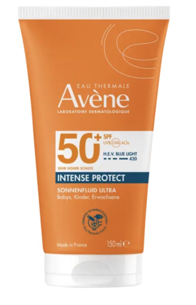 Das erweiterte Lichtschutz-Spektrum erfüllt die höchsten Anforderungen für die Haut und minimiert gleichzeitig die Auswirkungen auf die Umwelt.otect Sonnenfluid SPF 50+. Intense Protect Sonnenfluid SPF 50+ ist ein Sonnenschutzprodukt mit erweitertem Lichtschutzspektrum. Zum ersten Mal wird der Lichtschutz über UVB-UVA hinaus auf einen gefährlichen Teil der Sonnenstrahlung ausgedehnt: sichtbares, kurzwelliges HEV Blue Light. Ein Sonnenschutzprodukt, das sowohl für intensive Sonnenbedingungen als auch für empfindliche Haut geeignet ist. Seine hybride Textur zieht in drei Sekunden in die Haut ein, spendet intensive Feuchtigkeit für acht Stunden und wirkt dem Austrocknen entgegen. Es bietet ein transparentes, unsichtbares Finish ohne weiße Streifen, selbst auf dunklen Hauttönen. Es ist extrawasserfest und schweißresistent. Intense Protect Sonnenfluid SPF 50+ ist für Babys ab sechs Monaten, Kinder, Schwangere und Patienten unter oder nach onkologischer Behandlung sowie für abgeheilte tätowierte Haut geeignet. Seine Formulierung bietet eine sehr hohe Haut- und Augenverträglichkeit. Mit nur vier Filtern, einer reduzierten Konzentration an Sonnenfiltern und ohne Silikone ist die Formulierung umweltfreundlich. Die biologische Abbaubarkeitder Formulierung ist optimal. Seine nicht-ökotoxischen Sonnenfilter haben keinen Einfluss auf Korallen, Phytoplankton und Zooplankton. Die biologische Vielfalt der Meere wird daher bewahrt.
