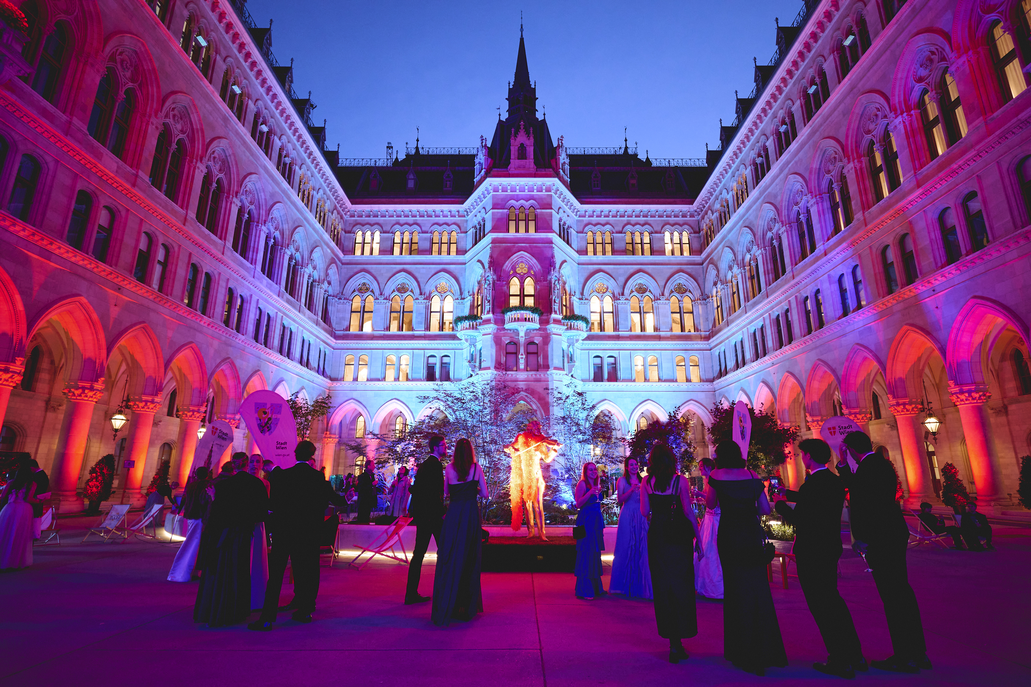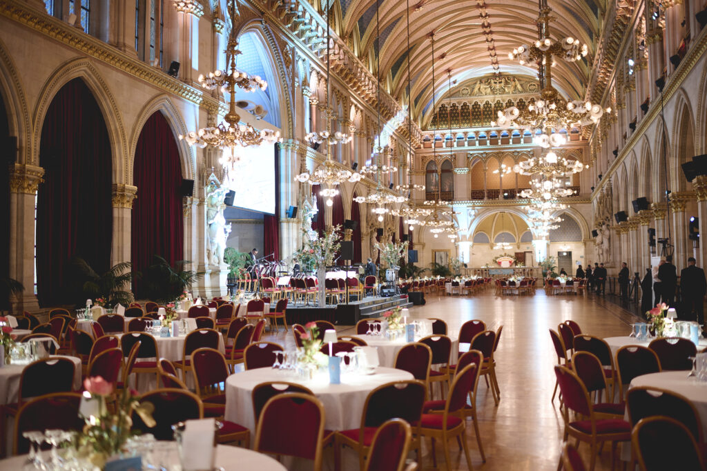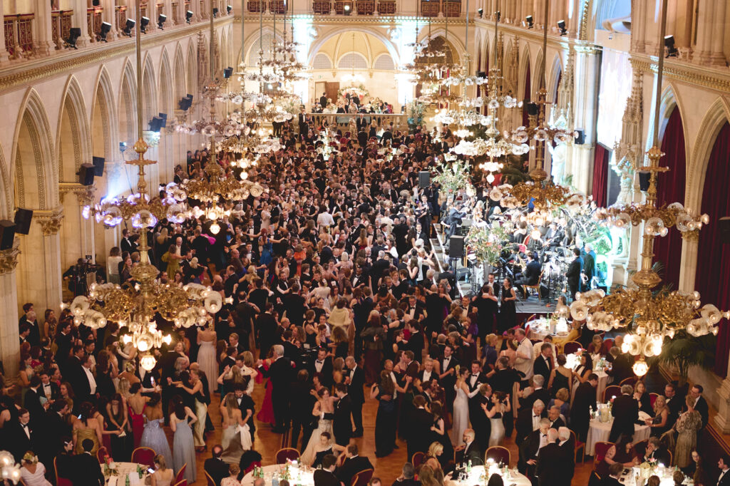 Schon beim Eintreffen der Gäste auf dem festlich beleuchteten Rathausplatz lag Vorfreude in der Luft. In schimmernden Roben und schwarzem Smoking, umrahmt von den neugotischen Arkaden, schritten die Ballbesucher über den roten Teppich in einen der prachtvollsten Säle Wiens. Die Eröffnung des Balls – eine Hommage an die Tradition mit Jungdamen- und Jungherrenkomitee – war ein Sinnbild für das harmonische Zusammenspiel von Anmut und Anspruch.