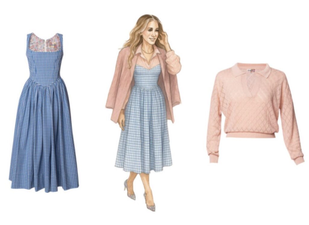 Zum Auftakt der Pressetour in New York erschien Sarah Jessica Parker in einem blau-weißen Gingham-Kleid von Lena Hoschek – eine Hommage an klassische Silhouetten mit modernem Twist. Die korsagenartige Taillenbetonung, kombiniert mit einem raffinierten Layering-Look – darunter ein feines Spitzentop – sorgte für einen Auftritt, der sowohl Retro-Flair als auch City-Chic versprühte.