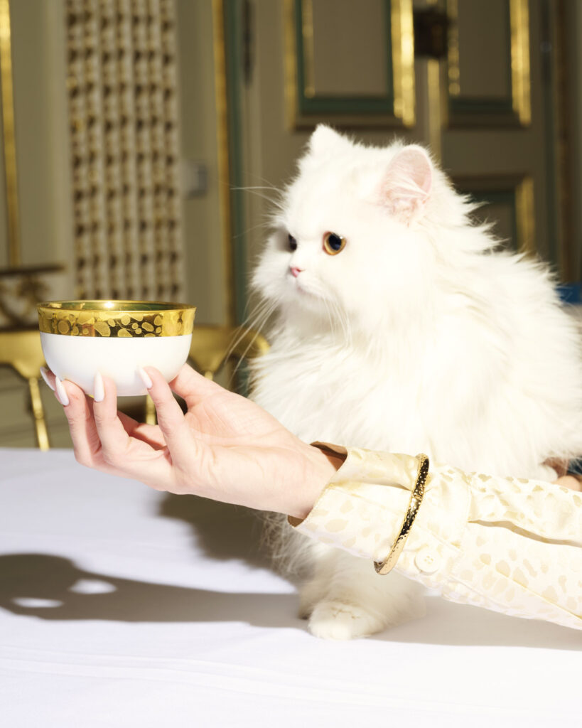 Die ikonische Form der Champagnerschale wurde in leuchtendem Weißporzellan neu interpretiert – inspiriert von Wiener Morgensalons, von seidig fließenden Stoffen und der anmutigen Präsenz von Katzen, denen die Marke La Katz ihren Namen verdankt. Das Ergebnis ist ein Objekt, das Rituale zelebriert: den ersten Schluck Champagner, ein stilles Gespräch, einen Moment nur für sich.