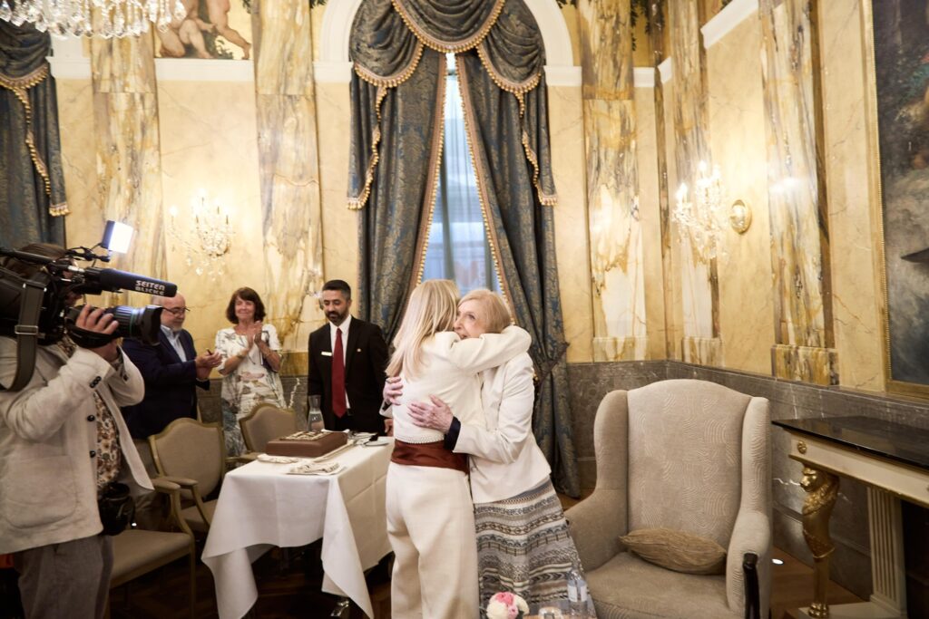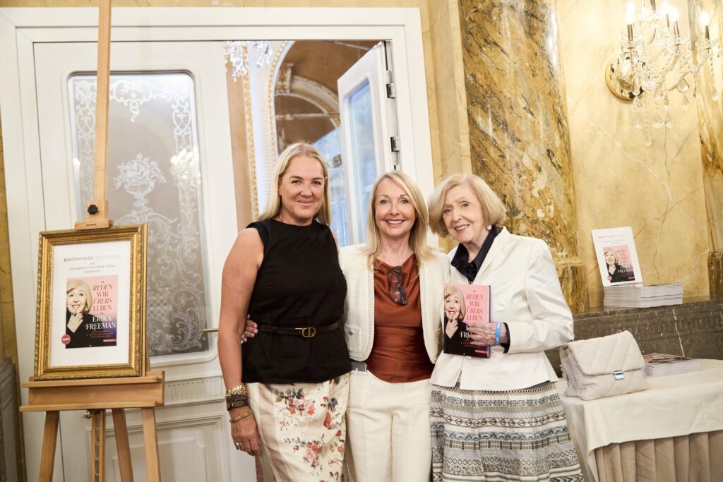 Ein Abend voller Esprit, Tiefe und Wiener Eleganz: Am Montag präsentierte Verlegerin Uschi Pöttler-Fellner ihr Buch „Reden wir übers Leben“ über die renommierte Psychoanalytikerin und Zeitzeugin Erika Freeman (98) im stilvollen Rahmen des Hotel Imperial. Geladen hatte der echo Media Buchverlag, der damit ein außergewöhnliches Werk feierte – persönlich, lebensklug und von zwei beeindruckenden Frauen getragen. Begleitet wurde die Präsentation von TV und Medien. An Dr. Freemans 98. Geburtstag, wurde der ORF-Beitrag in Seitenblicke ausgestrahlt.