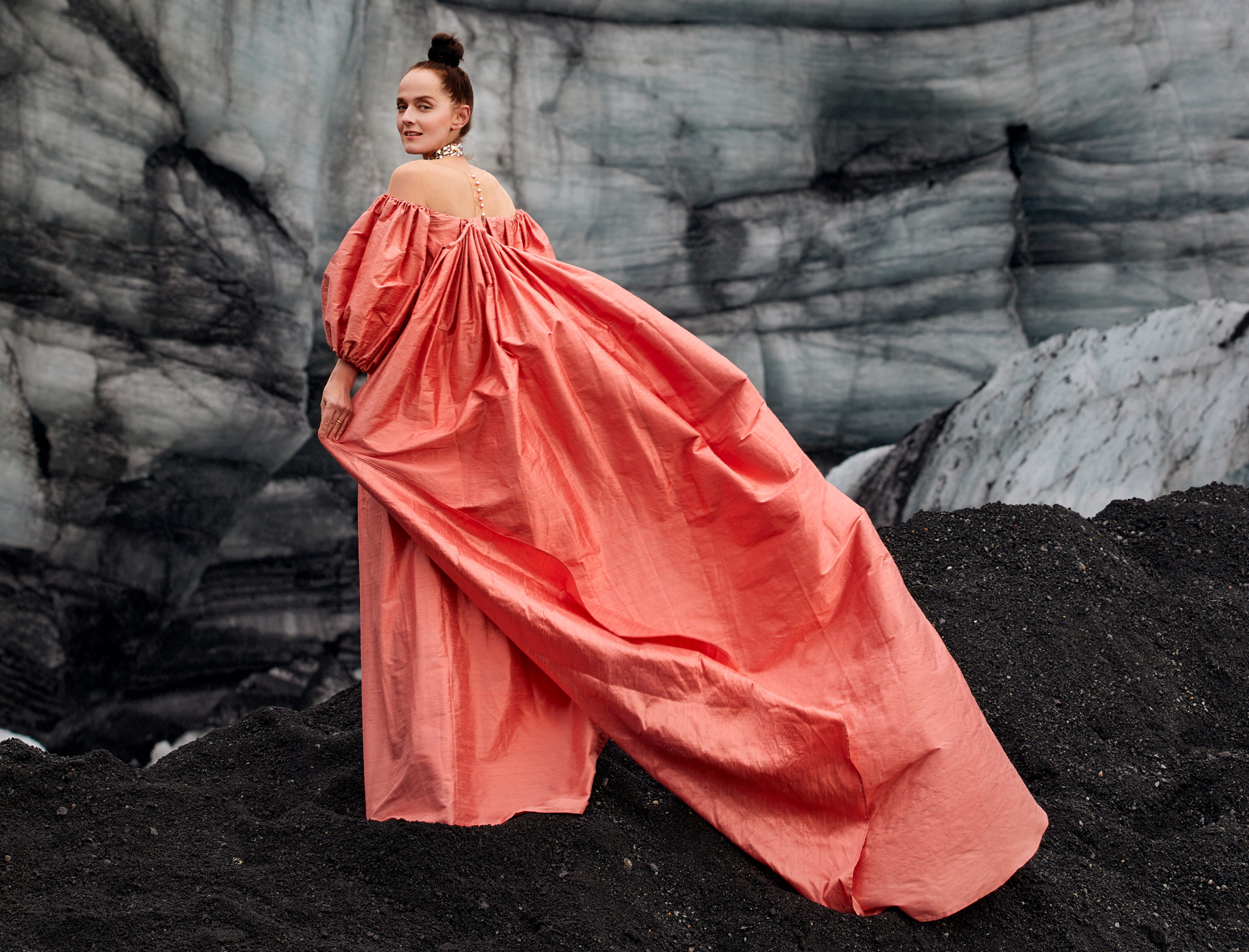 Ein Traum von einer Robe in silbernem Taft – stilvoll in Szene gesetzt von Austro-Designerin Dagmar Mikolics.