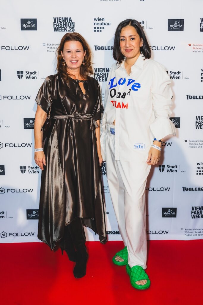 Nach der Show ist vor dem Get Together. Bei lockerer Atmosphäre, kühlen Drinks und inspirierenden Gesprächen feierten Gäste, Designer:innen und Modebegeisterte bis in die Nacht. Mit dabei: jede Menge bekannte Gesichter und VIPs, die dem Event zusätzlichen Glamour verliehen. Unter anderem gesichtet wurden Model Patricia Kaiser, Musiker Lukas Fendrich, Schauspielerin Lilian Klebow, Foodie Julian Kutos, Moderatorin Kimberly Budinsky – und viele mehr. Ein Abend, wie gemacht für stylishe Begegnungen und spannende Insider-Talks.
