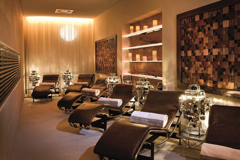 Die entschlackende Wirkung der Himalaya-Salzziegel im geräumigen „Brine Bath“ entfaltet sich sofort; „Steam Bath“ und „Infrarot Lounge“ runden das Angebot ab. Refreshment-Oasen, schicke Umkleiden und moderne Duschkabinen fehlen selbstverständlich nicht.