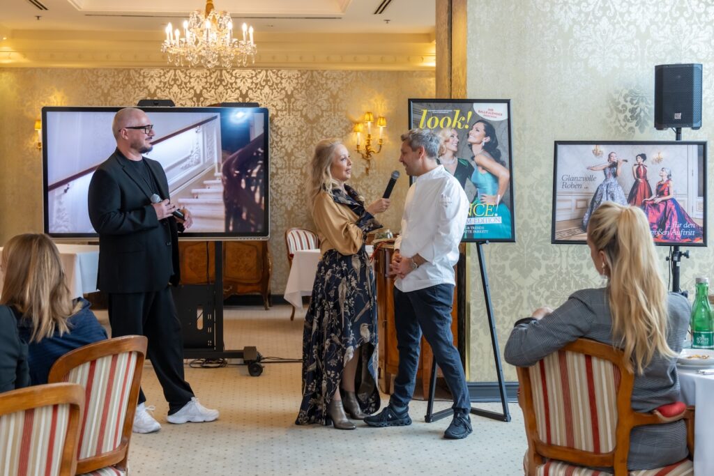 Unter den Gästen glänzten bekannte Persönlichkeiten wie Natalie Alison, Lilian Klebow und Tanja Duhovic, die auch das neue Look!-Cover schmücken. Charmant moderiert wurde der Vormittag von Medien-Profi Uschi Pöttler-Fellner und Creativ Director sowie ORF Trendscout Wolfgang Reichl, der Mode, Hairstyling und edlen Schmuck von Juwelier Heldwein zu einer stimmigen Fashion-Show vereinte.