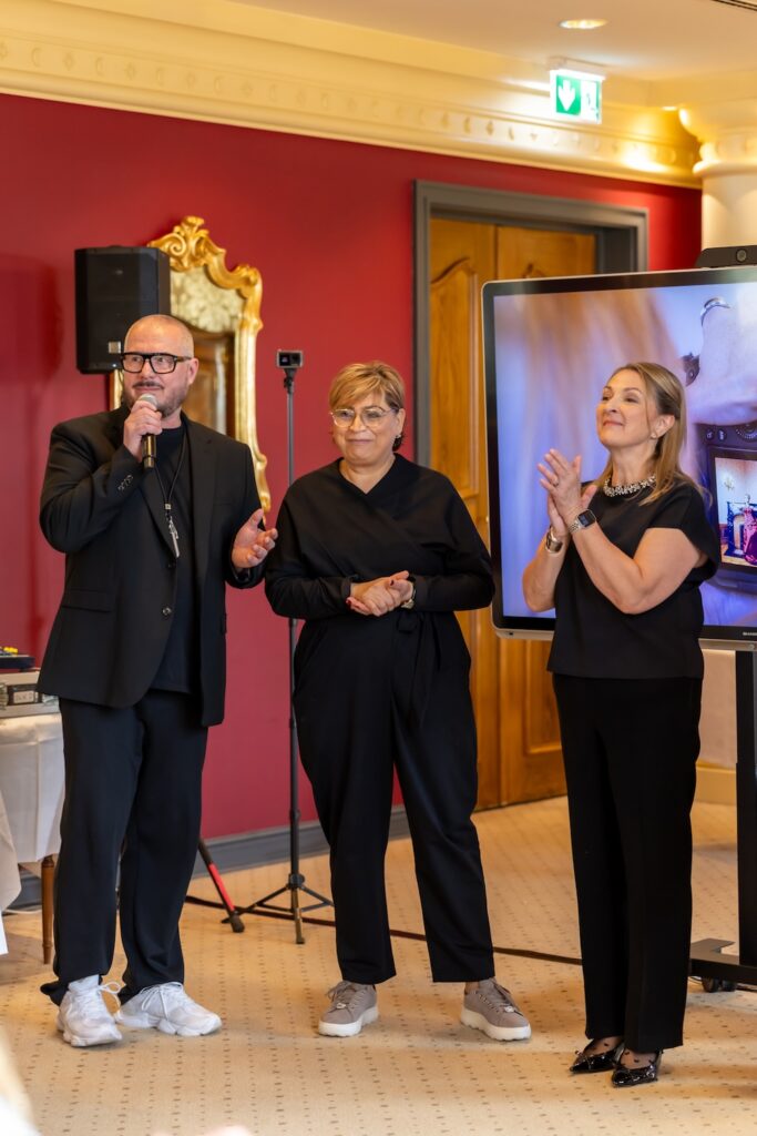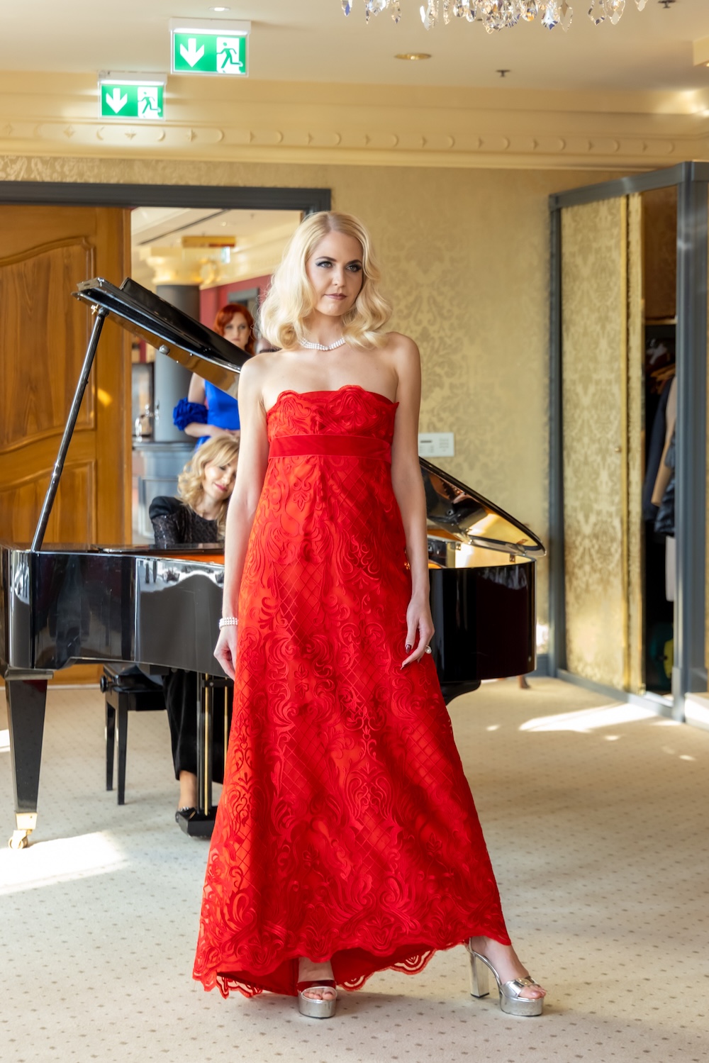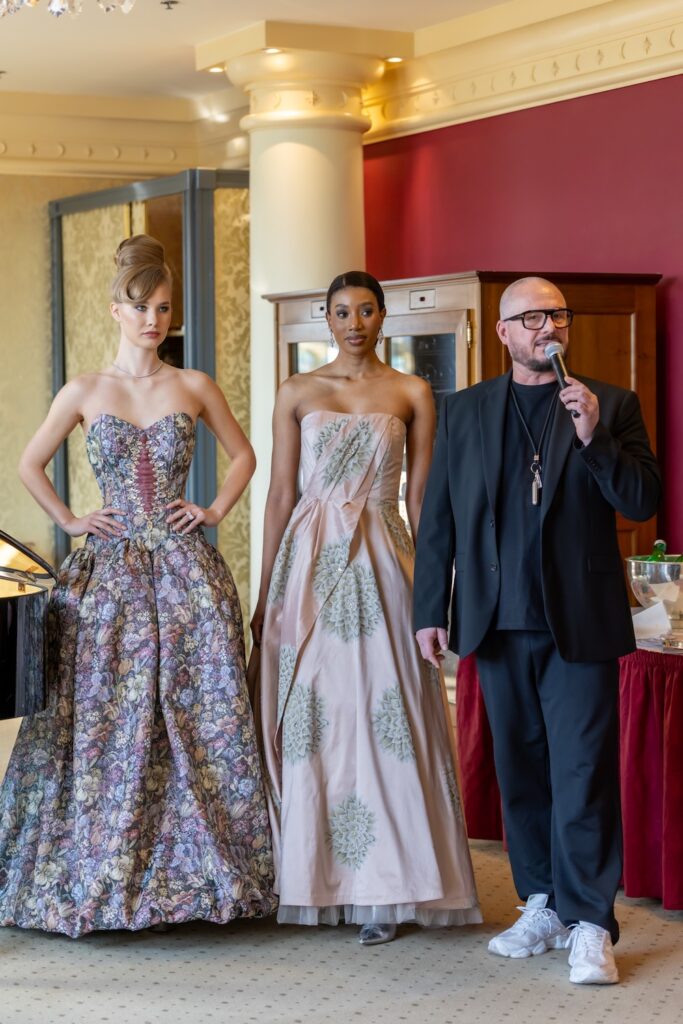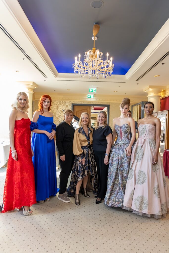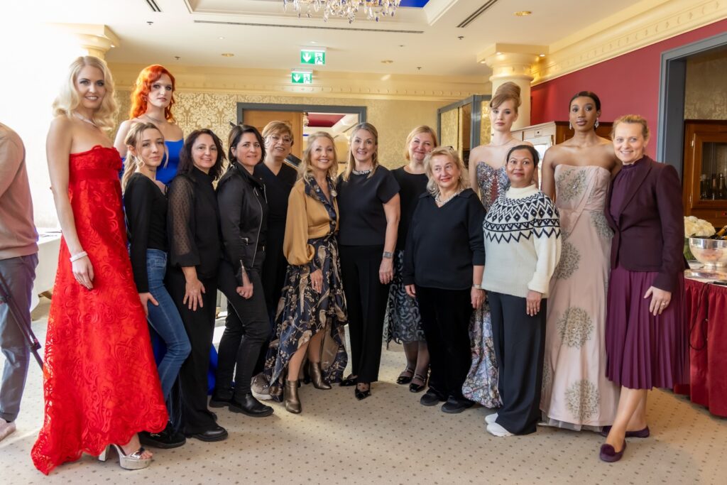Ein echtes Highlight waren auch die glamourösen Hairstylings der Models. Unter der Leitung von Gülten Karagöz, Friseure-Innungsmeisterin der Landesinnung Wien, zauberte das Team der Wiener Friseure kunstvolle Looks, inspiriert von Alexandre de Paris – jenem Legendenfriseur, der einst Brigitte Bardot stylte. Schon in den frühen Morgenstunden wurde in der Präsidenten-Suite frisiert, drapiert und perfektioniert.
