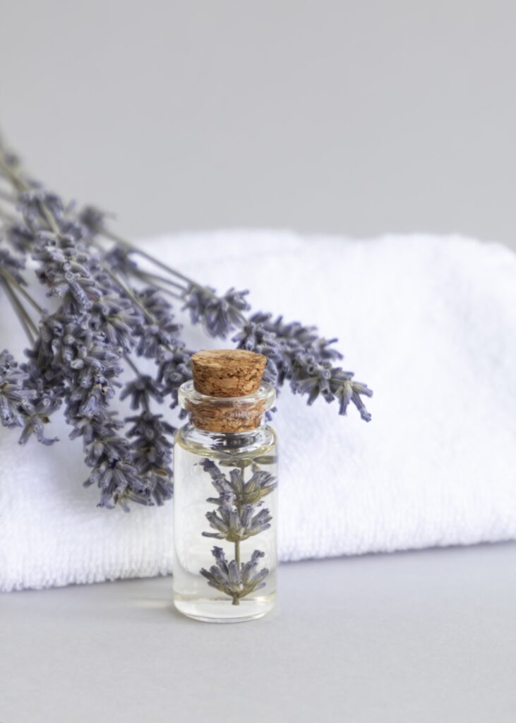 100 ml Mandel- oder Jojobaöl mit 8–10 Tropfen ätherischem Lavendelöl mischen, gut schütteln und lichtgeschützt lagern.