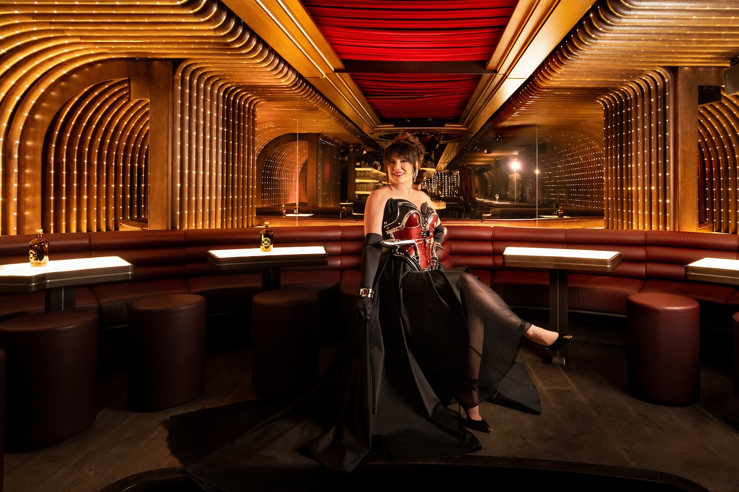 Im Zentrum: Eine skulpturale Korsage eines skandinavischen Designers Bjorn van den Berg, bekannt für spektakuläre Bühnenoutfits internationaler Stars. Das Piece, inspiriert von ikonischer Pop-Ästhetik, bringt eine Prise Showbühne in den traditionsreichen Ballsaal. Dazu funkelnder, ausdrucksstarker Schmuck, der nicht schmückt, sondern inszeniert.