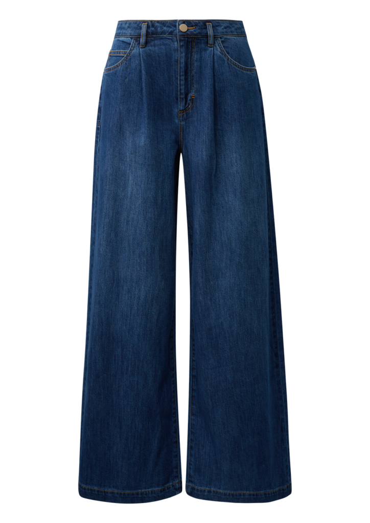 Besonders harmonisch wirkt der Trick in Kombination mit locker geschnittenen Hosen. Eine fließende Stoffhose sorgt für Eleganz, während Denim dem Outfit eine entspannte Note verleiht.