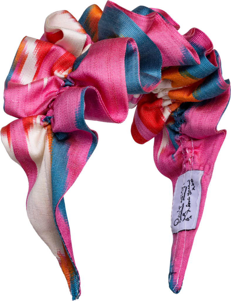 Gegründet 2022, ist Ibby and Puzz vor allem für seine unverwechselbaren Haarreifen aus handgefärbter usbekischer Ikat-Seide bekannt, kombiniert mit Kaschmir, Samt und anderen hochwertigen Materialien. Jedes Stück wird einzeln gefertigt und in limitierter Auflage produziert – eine Kollektion, die verspielte Eleganz mit zeitloser Raffinesse verbindet.