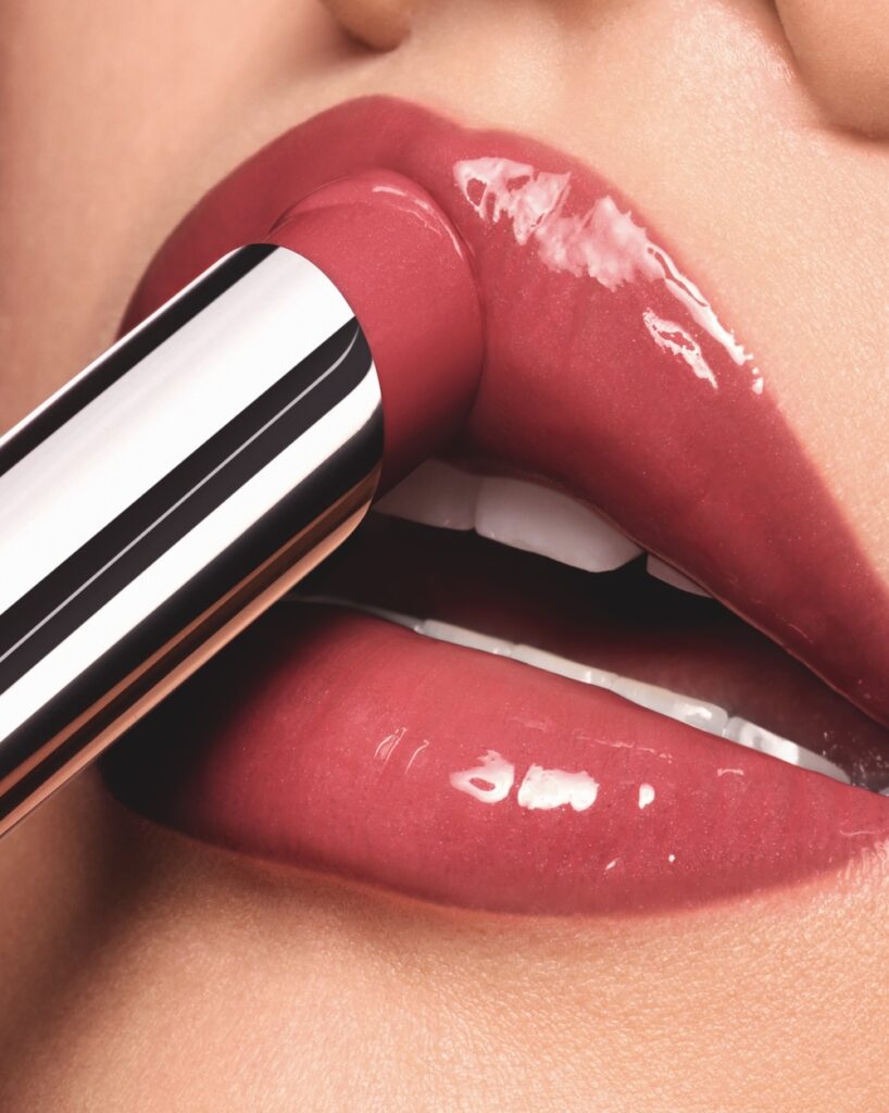 Der Glass Lipstick erscheint in zwei Effekten: einem klassischen „glossy“ Mirror-Finish und einer funkelnden Sparkle-Variante. Beide interpretieren Glanz neu – nicht übertrieben, sondern bewusst inszeniert. Die Farbe bleibt dabei zentral: von soften Rosétönen über warme Nudes bis hin zu intensiven Rottönen und tiefen Beerennuancen.