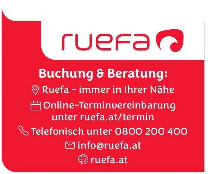 Und das Beste: Mit der digitalen Terminvereinbarung auf ruefa.at/termin ist ein persönliches Beratungsgespräch – im Reisestore oder per Video – nur wenige Klicks entfernt. So beginnt der Urlaub schon beim Planen.